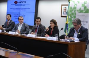 O representante do Ministério da Educação, Geraldo Andrade, destacou que, apesar da restrição imposta pela lei dos gastos públicos, o orçamento do ministério não sofreu diminuição. “Os institutos e universidades têm razão: a gente tem as contas aqui que precisam ser corrigidas pela inflação ou algo do gênero, mas, quando existe um limite orçamentário, aí nós entramos numa contradição porque o Ministério do Planejamento junto com a Fazenda, eles fazem uma projeção do que é o orçamento e, às vezes esse orçamento real é menor do que o do ano anterior”, disse Geraldo Andrade.